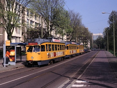 Op deze dag maakt het driewagenstel 1192+1175+1148 een proefrit met het oog op het naderende afscheidsfeest van de PCC's. Twee dagen eerder zijn deze trams vanuit de remise Scheveningen overgebracht naar de werkplaats Lijsterbesstraat. [...]